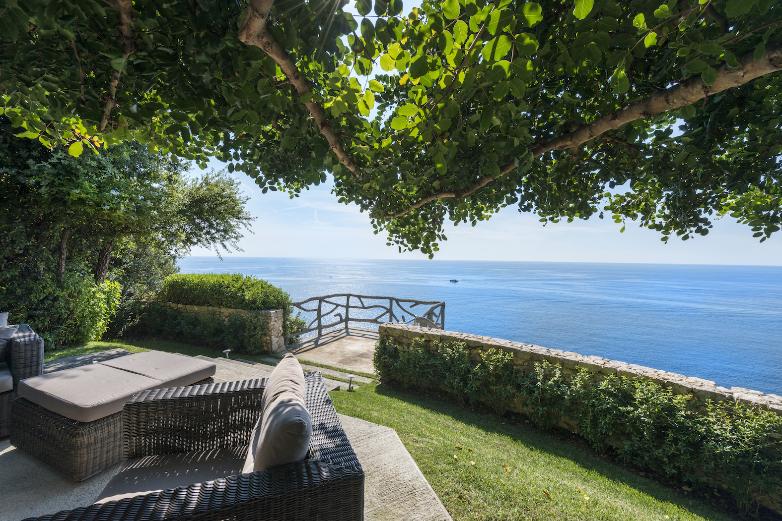 Vila je dokonale začleněna do krajiny a je umístěna na úbočí útesu s výhledem na moře, mezi Cap Ferrat a Baie des Anges. Tato luxusní nemovitost o rozloze 550 m² zaujme svými 8 600 m² květinových zahrad a teras, kde se nachází venkovní bazén.