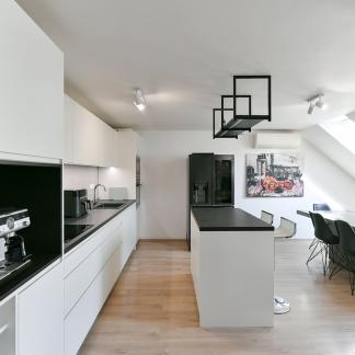 We offer for sale a bright duplex apartment 4+kk with a total area of 107.8 m², which is located on the 6th and 7th floors of a building with an elevator in the one-way Zborovská street in the attractive location Prague 5 – Smíchov.
