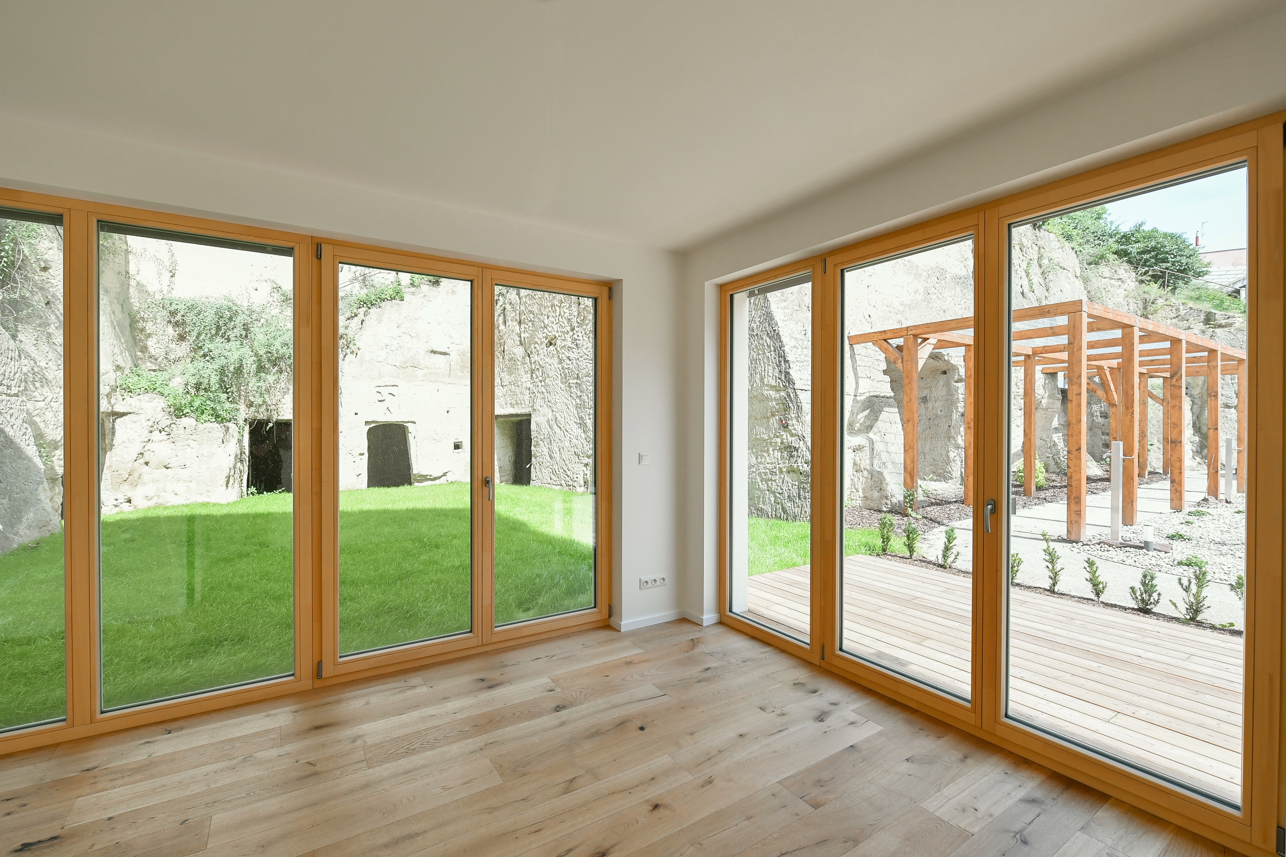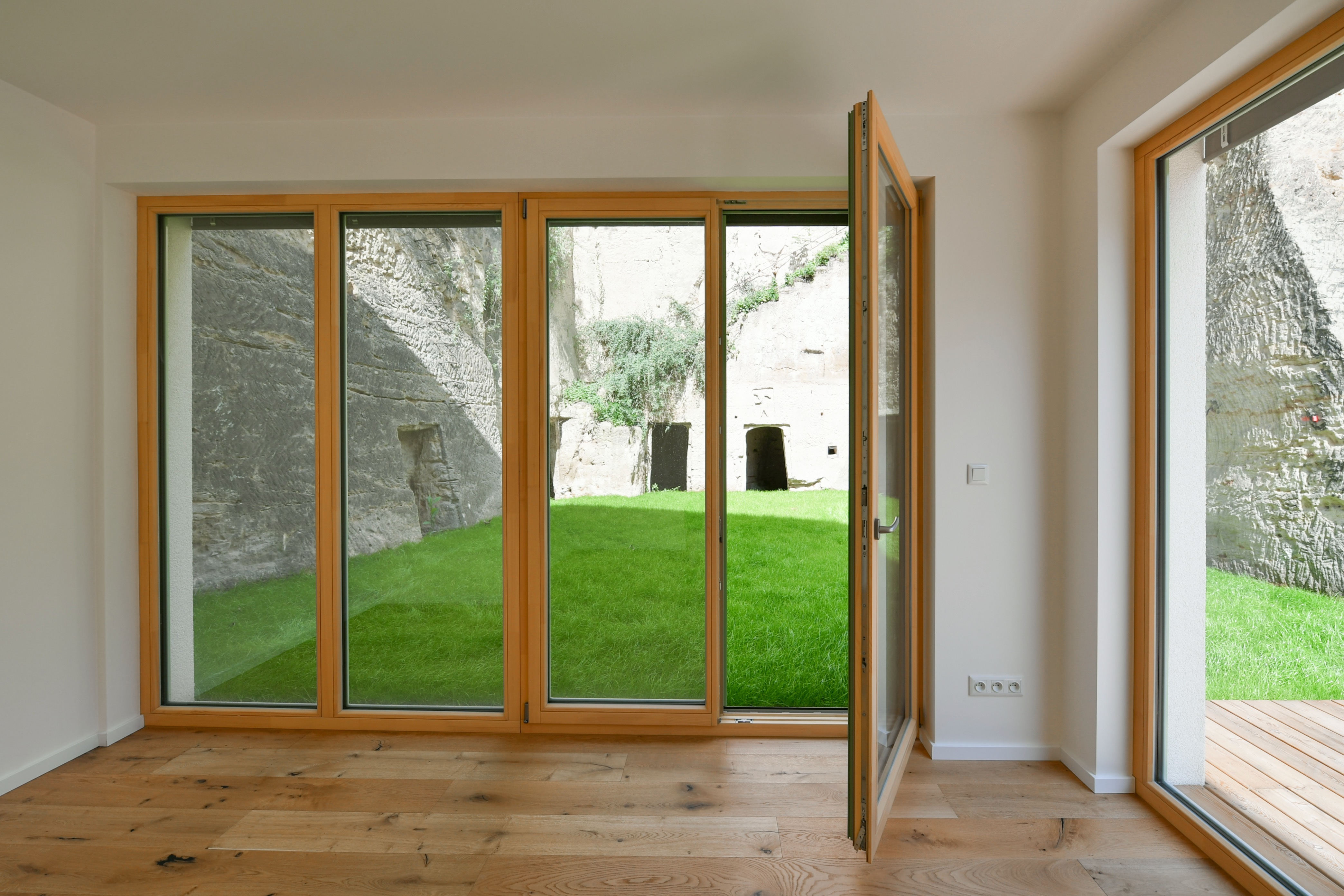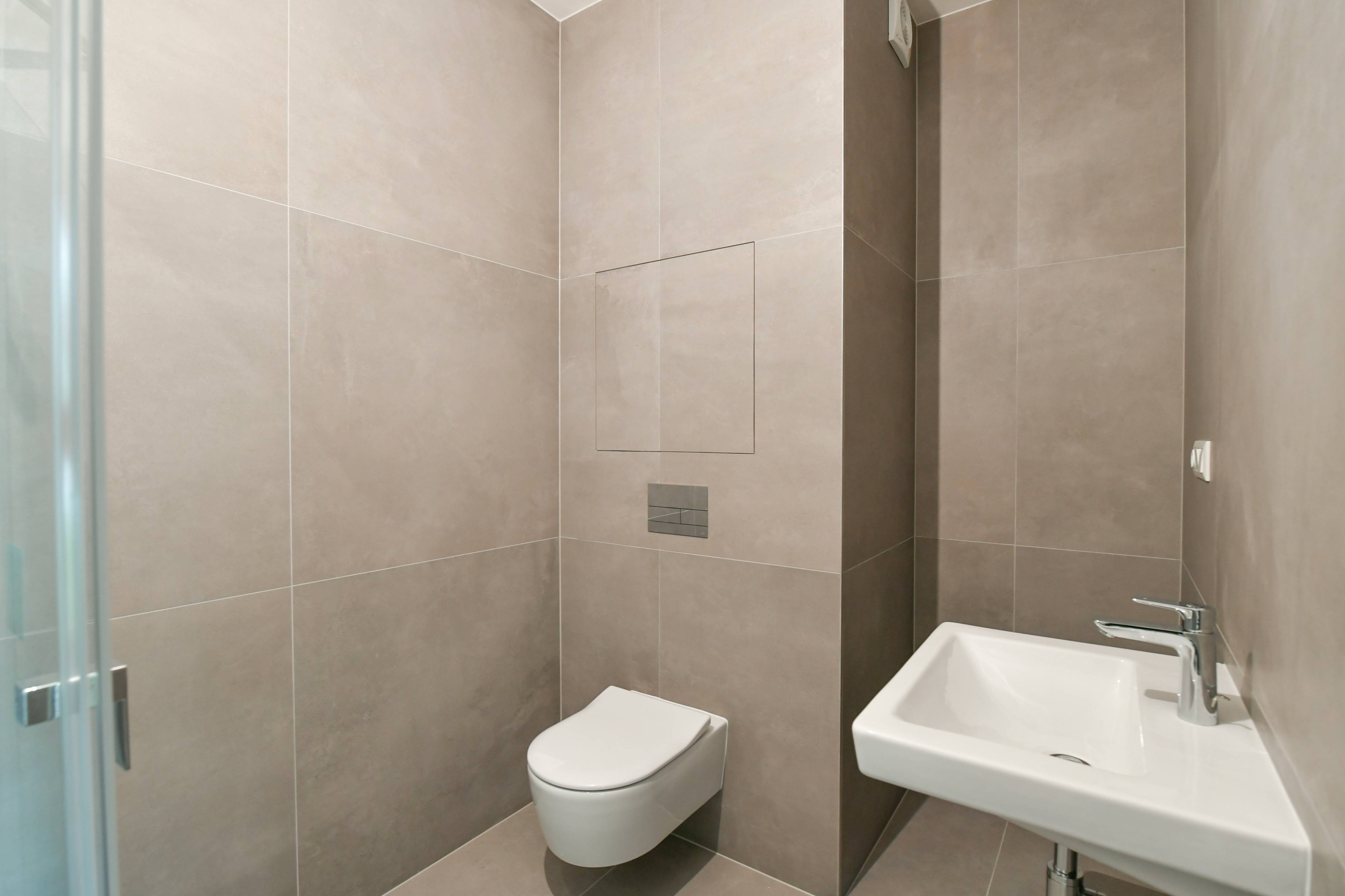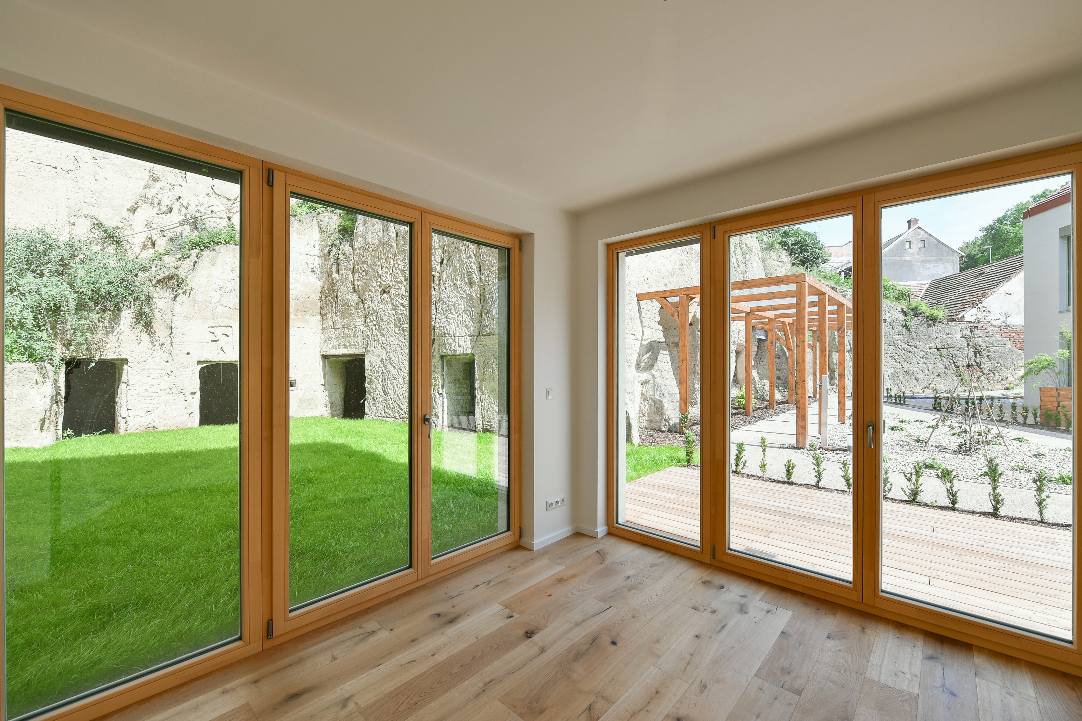 Apartment No. 6 is a very quiet and sunny ground-floor apartment with many French windows and direct access from most rooms to a spacious front garden of approx. 25,5m2. The apartment is entered either from the garage via the elevator to the entrance hall or through the main entrance to the house from Sestupná street, and the owner can receive the guests directly from the garden.