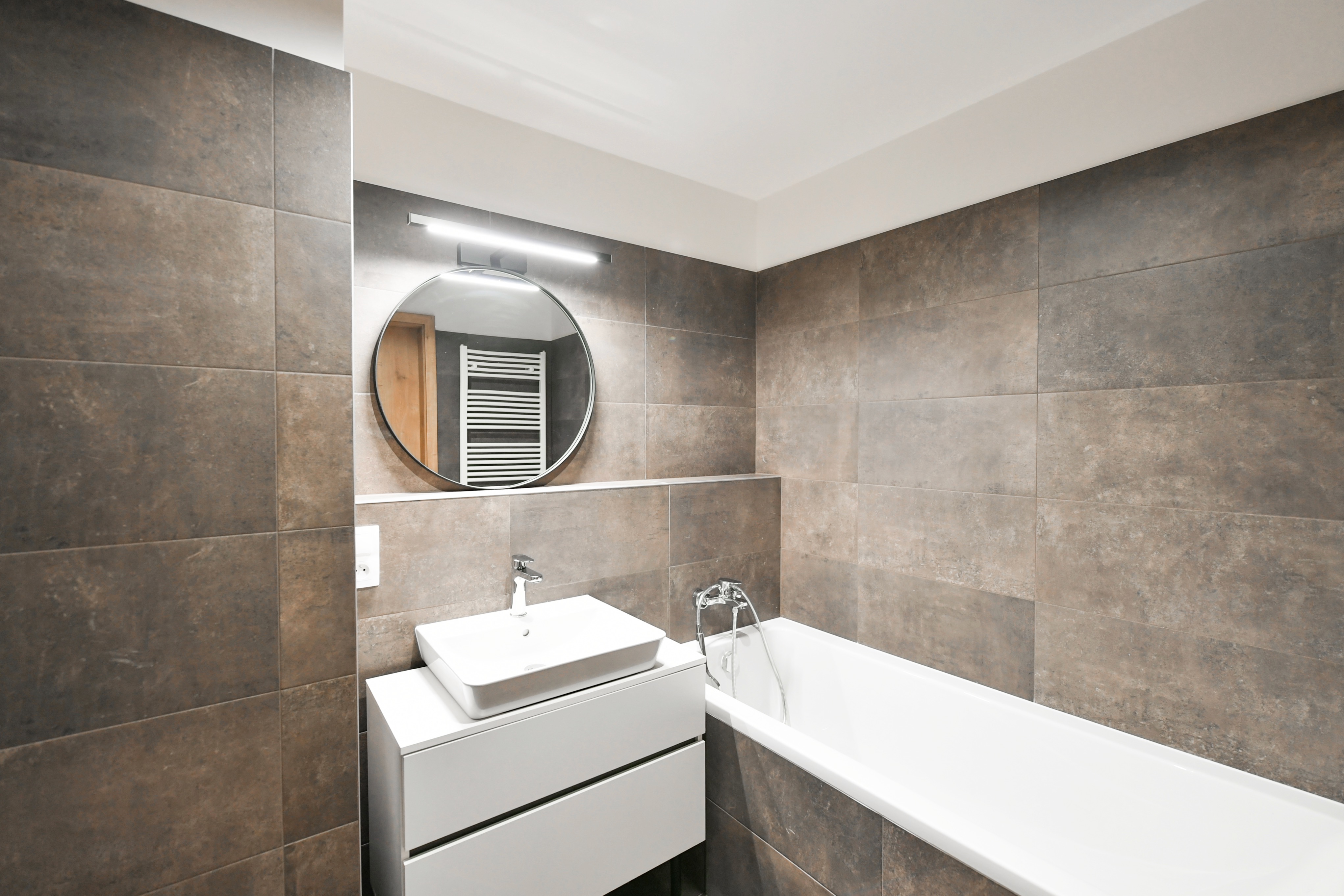 The property is very quiet, bright, and elegant, equipped with a kitchen unit with bar seating and custom-built wardrobes in the spacious entry hall. It also comes with a bed frame (mattress not included). The apartment has a bathroom with a bathtub and washing machine, as well as a 3 m² storage room.