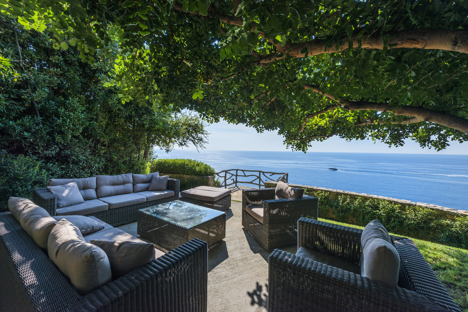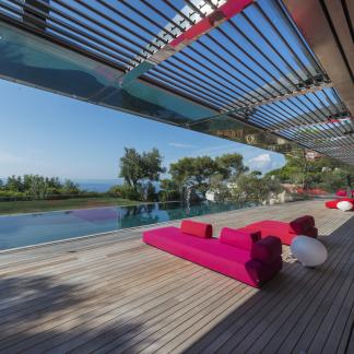 Vila je dokonale začleněna do krajiny a je umístěna na úbočí útesu s výhledem na moře, mezi Cap Ferrat a Baie des Anges. Tato luxusní nemovitost o rozloze 550 m² zaujme svými 8 600 m² květinových zahrad a teras, kde se nachází venkovní bazén.